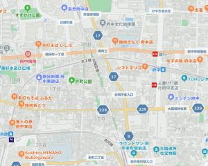 宮西は府中市の中央に位置する。 東から時計回りに、府中市宮町、府中市本町、府中市片町 、府中市寿町、府中市府中町、に隣接する。 府中市役所が存在する、市の中核となる。
